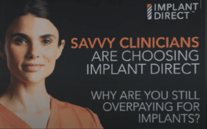 Danaher completed the purchase of Implant Direct from Dr. Gerald Niznick in January 2014 and December of the same year bought NobelBiocare (“Nobel”). In 2019, Danaher’s dental-related companies were spun off as a separate public company under the name Envista. While NobelBiocare and Implant Direct have different presidents, the two implant companies coordinate their operations with Implant Direct shipping its products out of Nobel’s Yorba Linda facility and the two companies share trade show booths, symposiums, and national sales meetings. Implant Direct salespeople are discouraged from trying to convert Nobel customers even though Implant Direct’s RePlant Tri-lobe implant as well as InterActive and Iconic implants offer compatible prosthetic platforms with Nobel implants. Nobel customers should pay attention to Implant Direct’s marketing slogan “SAVVY CLINICIANS ARE CHOOSING IMPLANT DIRECT…WHY ARE YOU STILL OVERPAYING FOR IMPLANTS?”![]()